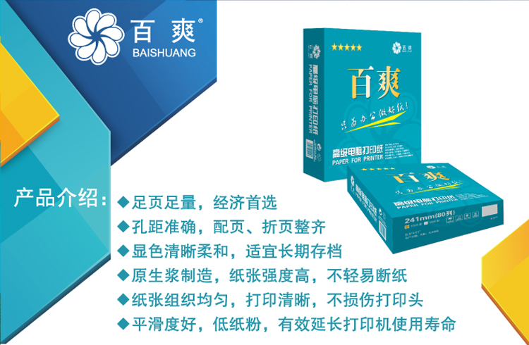蓝百爽打印纸241-3层彩1/2 三联二等分撕边(1000页)